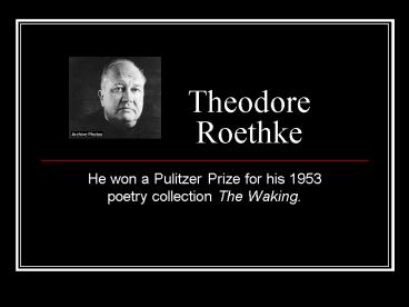 subject of much of his poetry. - Roethke won the 1954 Pultizer Prize for poetry