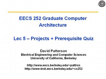 Title: EECS 252 Graduate Computer Architecture Lec 5