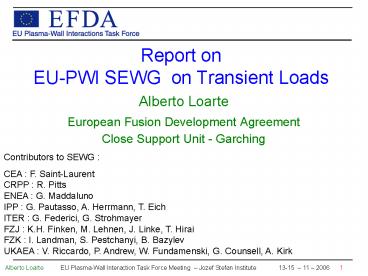 ) FZJ, CRPP, ENEA, UKAEA, CEA, IPP, JET,