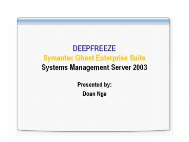 Title: DEEPFREEZE Symantec Ghost Enterprise Suite Systems Management Server 2003