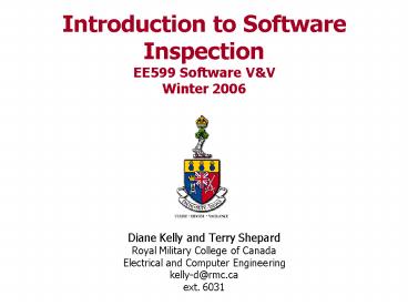 Title: Introduction to Software Inspection EE599 Software V
