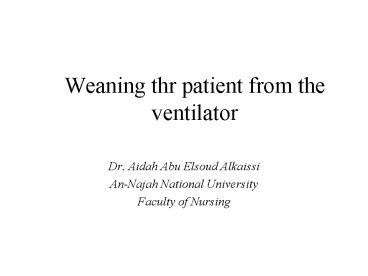 Weaning thr patient from the ventilator PowerPoint PPT Presentation