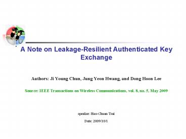 <Notice: Removed> A Note on LeakageResilient Authenticated Key Exchange PowerPoint PPT Presentation
