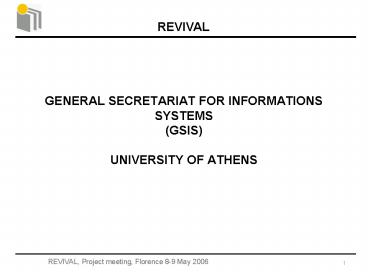 Title: GENERAL SECRETARIAT FOR INFORMATIONS SYSTEMS GSIS UNIVERSITY OF ATHENS