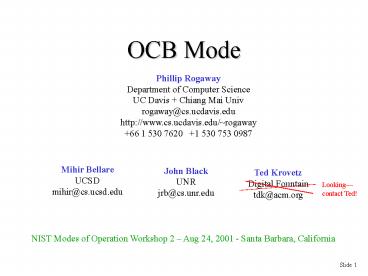 - OCB web page www.cs.ucdavis.edu/rogaway