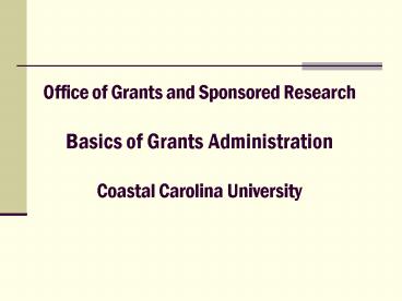 Office of Grants and Sponsored Research Basics of Grants Administration Coastal Carolina University PowerPoint PPT Presentation