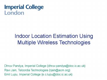 <Notice: Removed> Indoor Location Estimation Using Multiple Wireless Technologies PowerPoint PPT Presentation