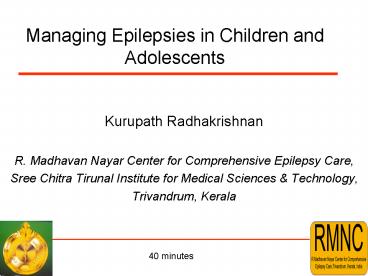 1Managing Epilepsies in Children and Adolescents