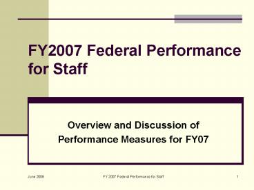 <Notice: Removed> FY2007 Federal Performance for Staff PowerPoint PPT Presentation