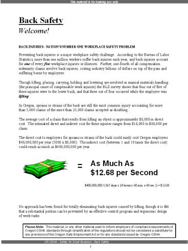 1 Back Safety BACK INJURIES - NATIONS NUMBER