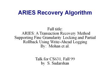 <Notice: Removed> ARIES Recovery Algorithm PowerPoint PPT Presentation