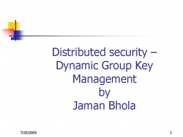 <Notice: Removed> Distributed security Dynamic Group Key Management by Jaman Bhola PowerPoint PPT Presentation