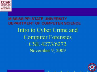 <Notice: Removed> Intro to Cyber Crime and Computer Forensics CSE 4273/6273 November 9, 2009 PowerPoint PPT Presentation