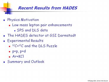 <Notice: Removed> Recent Results from HADES PowerPoint PPT Presentation