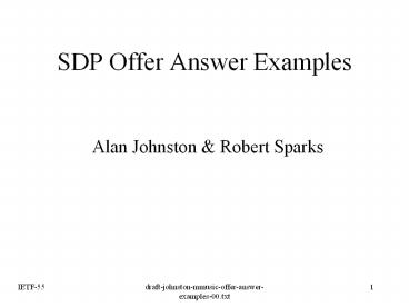 SDP Offer Answer Examples PowerPoint PPT Presentation