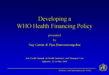 Title: Developing a WHO Health Financing Policy