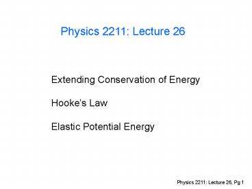 Physics 2211: Lecture 26 PowerPoint PPT Presentation