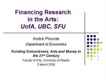 Title: Financing Research in the Arts: UofA, UBC, SFU