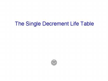 The Single Decrement Life Table PowerPoint PPT Presentation