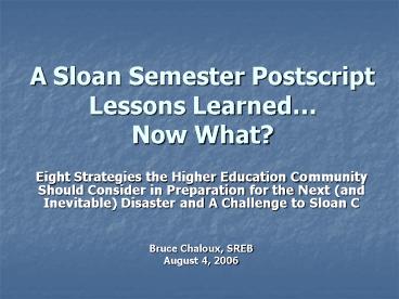 A Sloan Semester Postscript Lessons Learned Now What PowerPoint PPT Presentation
