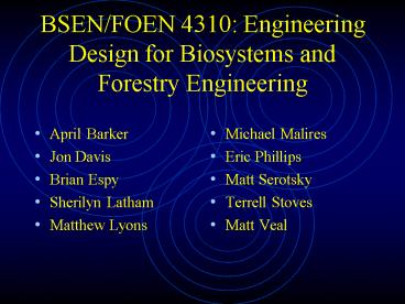 <Notice: Removed> BSENFOEN 4310: Engineering Design for Biosystems and Forestry Engineering PowerPoint PPT Presentation