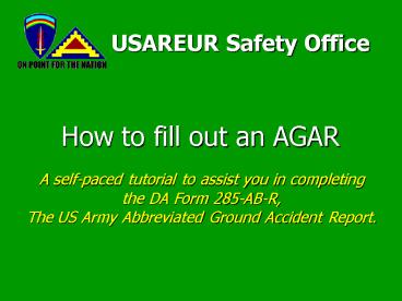 and been tasked to complete the DA FORM 285-AB-R,