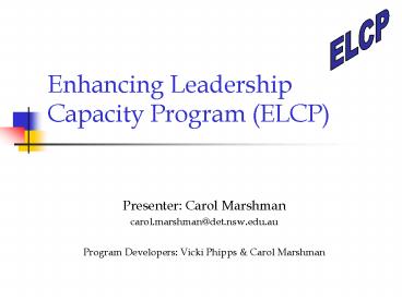 Enhancing Leadership Capacity Program ELCP PowerPoint PPT Presentation