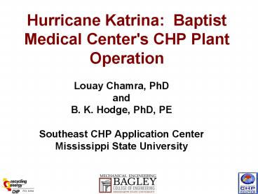 Hurricane Katrina: Baptist Medical Center's CHP Plant Operation PowerPoint PPT Presentation