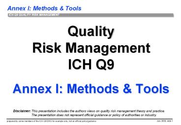 Title: Quality Risk Management ICH Q9 Annex I: Methods