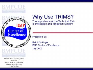 Time is money, and he wants this development program to be ... Process Based And Predictive. www.bmpcoe.org. Why Use TRIMS? 12. TRIMS Proactive Methodology ... – PowerPoint PPT presentation