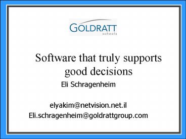 <Notice: Removed> Software that truly supports good decisions PowerPoint PPT Presentation