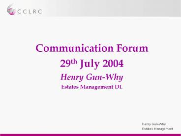 1Communication Forum 29th July 2004 Henry Gun-Why