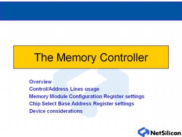 <Notice: Removed> The Memory Controller PowerPoint PPT Presentation