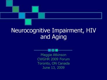 Title: Neurocognitive Impairment, HIV and Aging