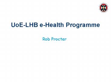 UoELHB eHealth Programme PowerPoint PPT Presentation