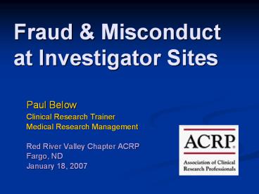development of this presentation - Tim French, Red River Valley Chapter ACRP, for