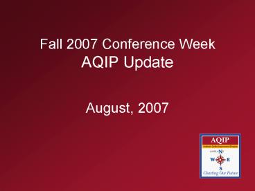 <Notice: Removed> Fall 2007 Conference Week AQIP Update PowerPoint PPT Presentation