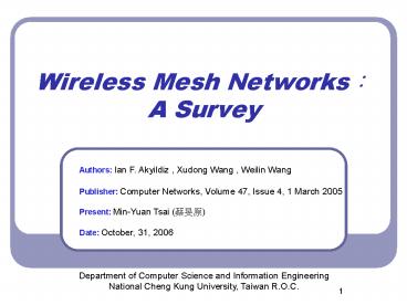 1Wireless Mesh NetworksA Survey