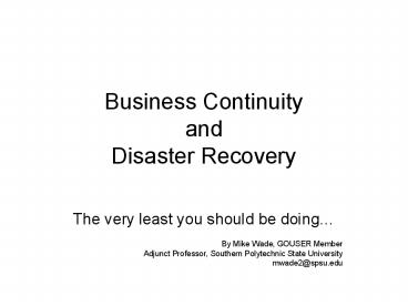 Title: Business Continuity and Disaster Recovery