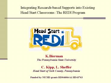 Title: Head Start REDI Researchbased, Developmentally Informed