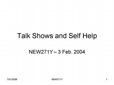 Talk Shows and Self Help - PowerPoint PPT Presentation