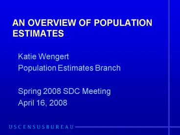 AN OVERVIEW OF POPULATION ESTIMATES PowerPoint PPT Presentation