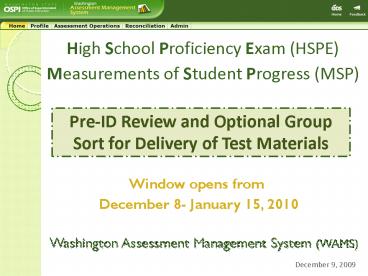 Title: Washington Assessment Management System WAMS