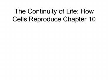 Title: The Continuity of Life: How Cells Reproduce Chapter 10