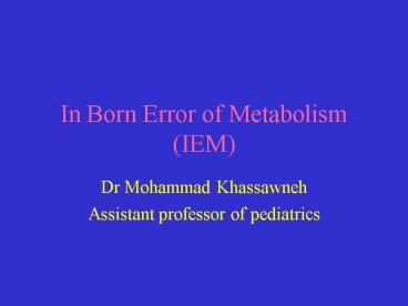In Born Error of Metabolism IEM PowerPoint PPT Presentation