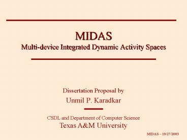 <Notice: Removed> MIDAS Multidevice Integrated Dynamic Activity Spaces PowerPoint PPT Presentation