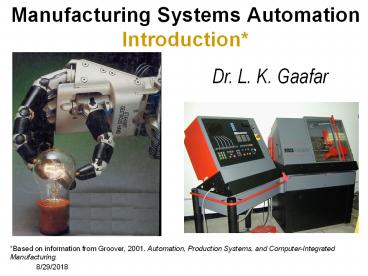 <Notice: Removed> Manufacturing Systems Automation Introduction* PowerPoint PPT Presentation
