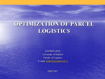Title: OPTIMIZATION OF PARCEL LOGISTICS