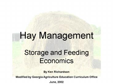 Hay 60.38 - A 30 loss to stored bales 18.00