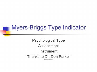Title: MyersBriggs Type Indicator